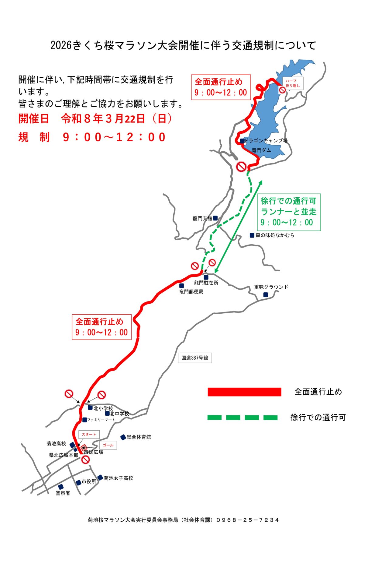 菊池桜マラソンによる交通規制について